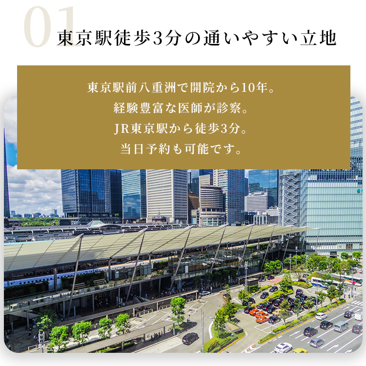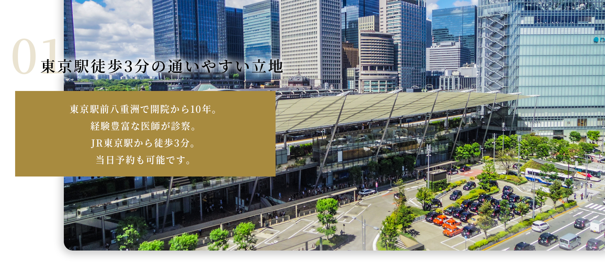 - JR東京駅八重洲中央口から徒歩3分/八重洲地下街22番出口の左階段を上ってすぐ