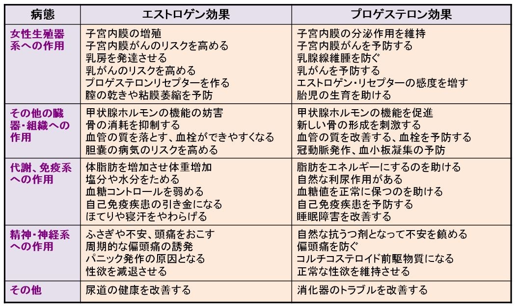 エストロゲンとプロゲステロンの作用の比較