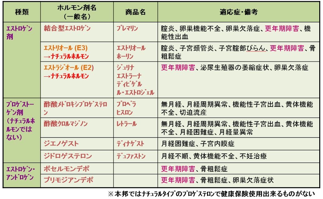 各種女性ホルモン剤の種類と適応する症状