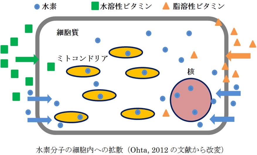 水素分子「H2」はこの世で最も小さな分子です。細胞の中のミトコンドリアにも速やかに浸透していきます。