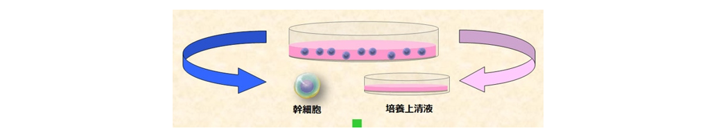 - 培養上清中のエクソソームによる作用:がん細胞の増殖抑制・転移抑制の可能性、免疫調節、老化制御など